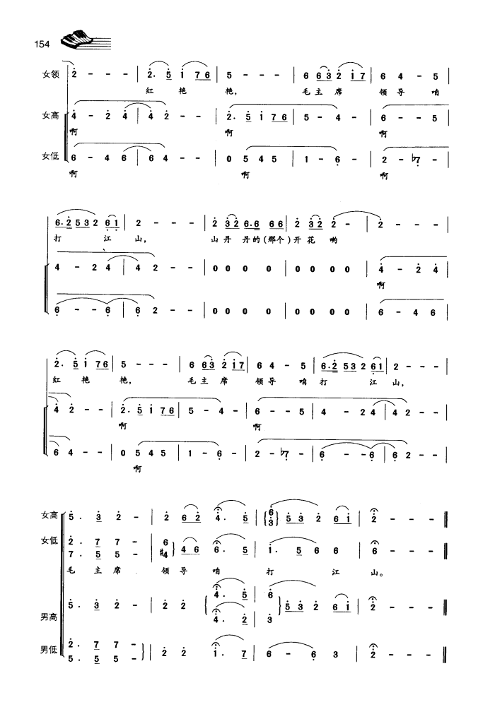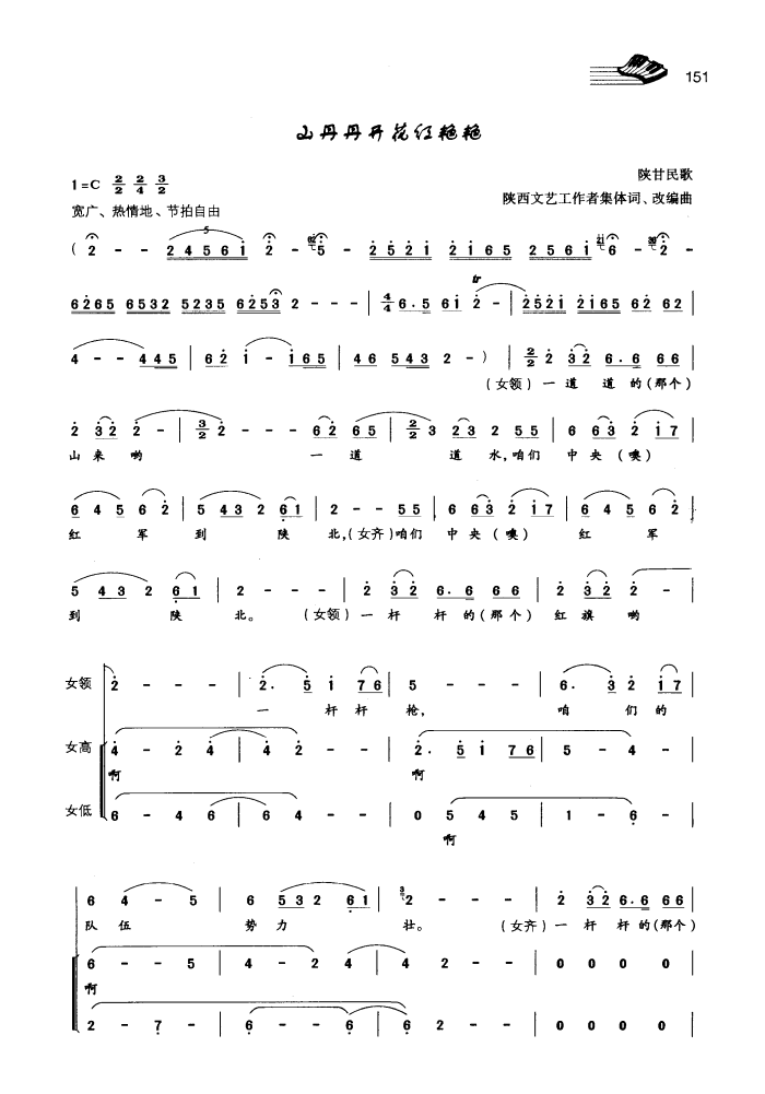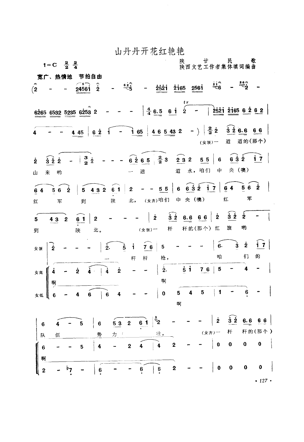 《山丹丹开花红艳艳(领唱合唱)》简谱 陕西省歌舞剧院 杨巧领唱