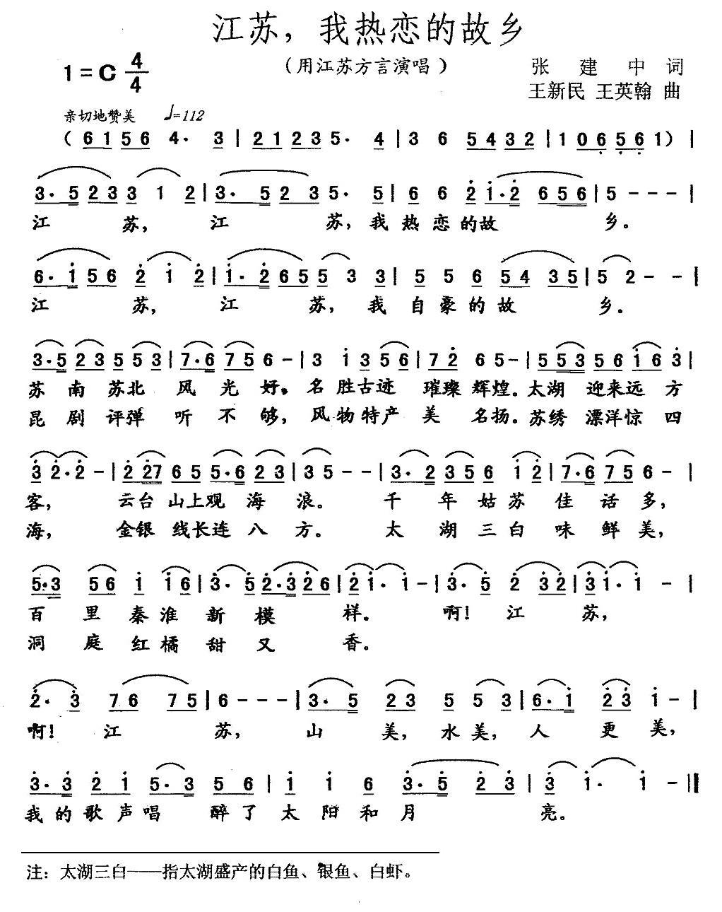 《江苏,我热恋的故乡(张建中词 王新民 王英翰曲)》简谱