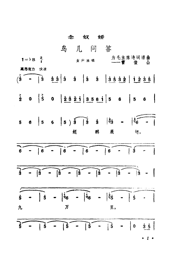 《念奴娇·鸟儿问答(河北梆子曲调)》简谱 郑湘娟