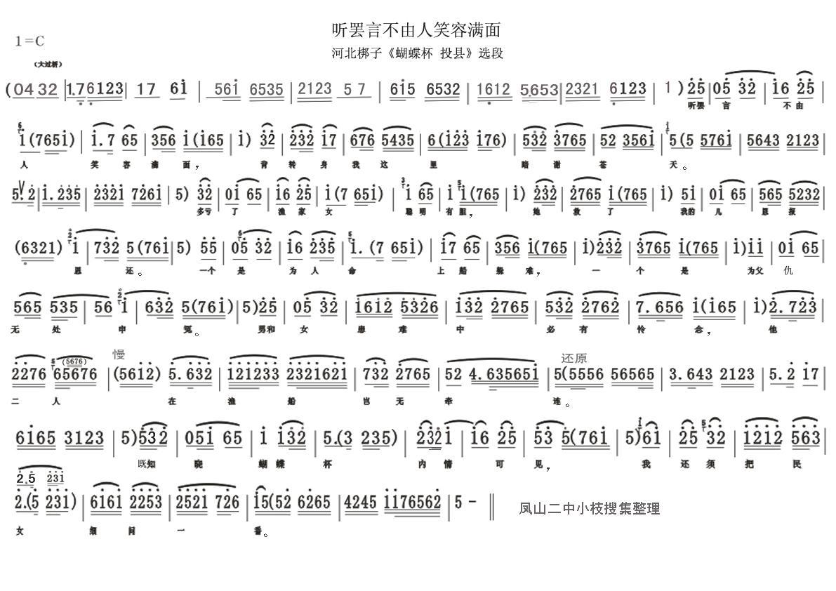 《[河北梆子]听罢言不由人笑容满面(《蝴蝶杯·投县》选段)》简谱