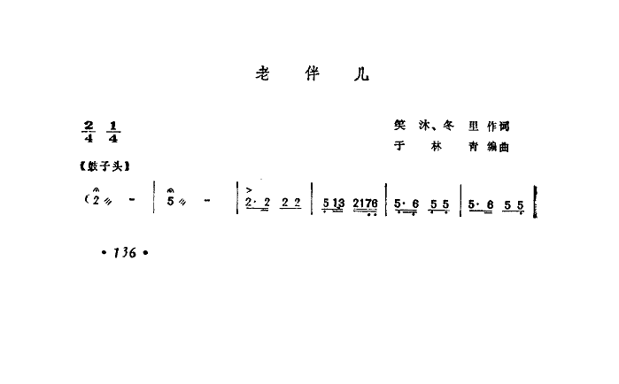 《老伴儿(河南大调曲子坐唱)》简谱 许默文、杨子春领唱