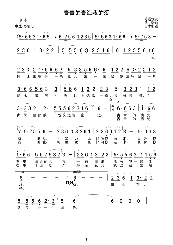 《青青的青海我的爱》简谱