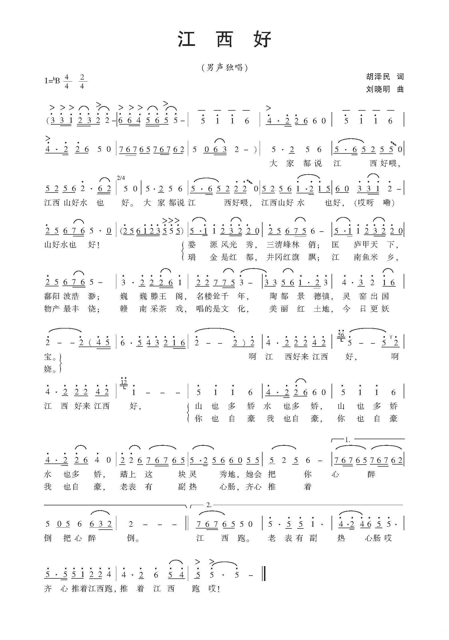 《江西好(胡泽民词 刘晓明曲)》简谱