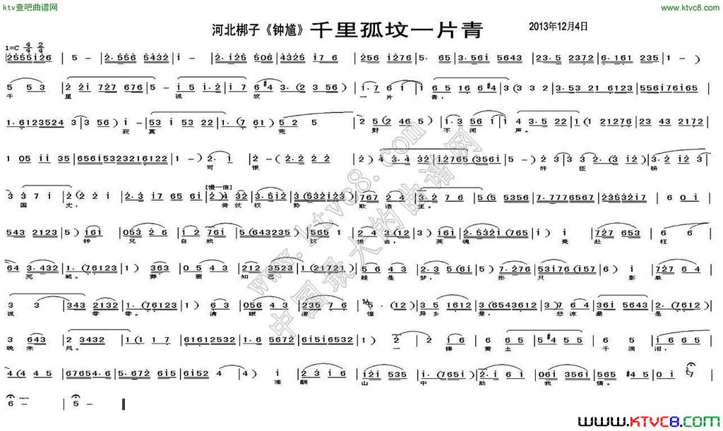 [河北梆子] 千里孤坟一片青(《钟馗》选段)简谱