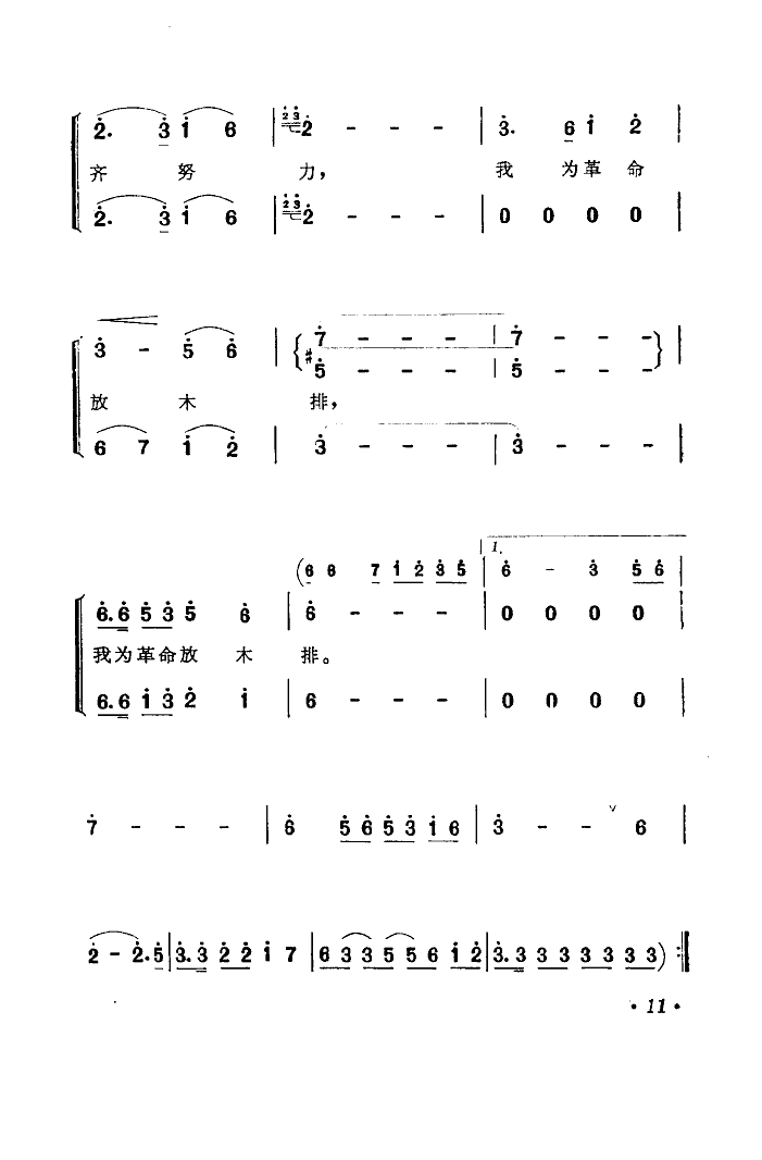 《我为革命放木排(男声合唱)》简谱 吉林省延边朝鲜族自治州文工团第12张