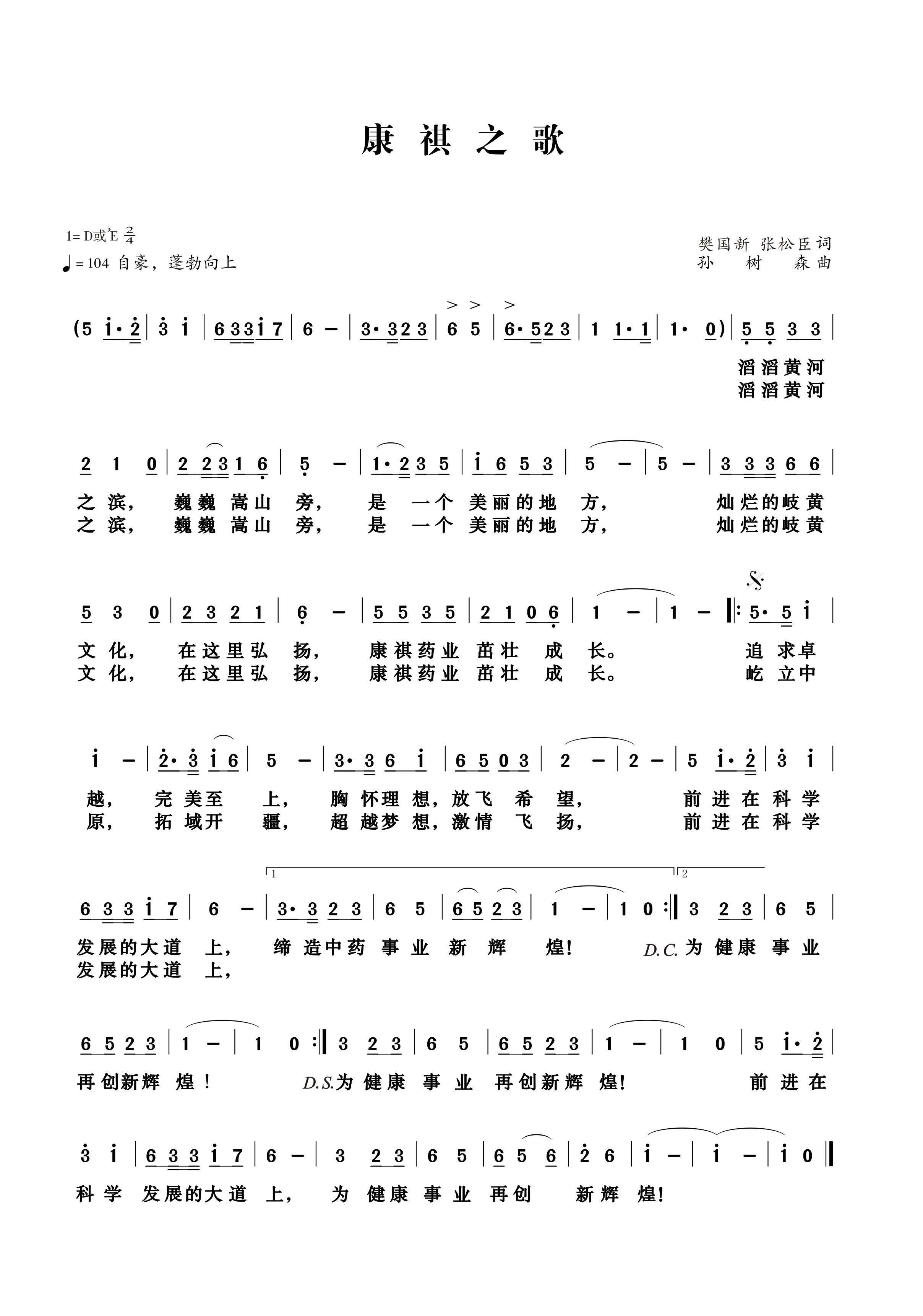 《康祺药业之歌(河南康祺药业歌曲)》简谱 河南歌舞剧院