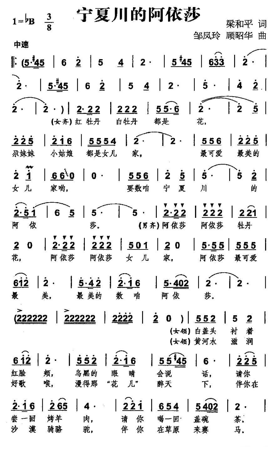 《宁夏川的阿依莎》简谱