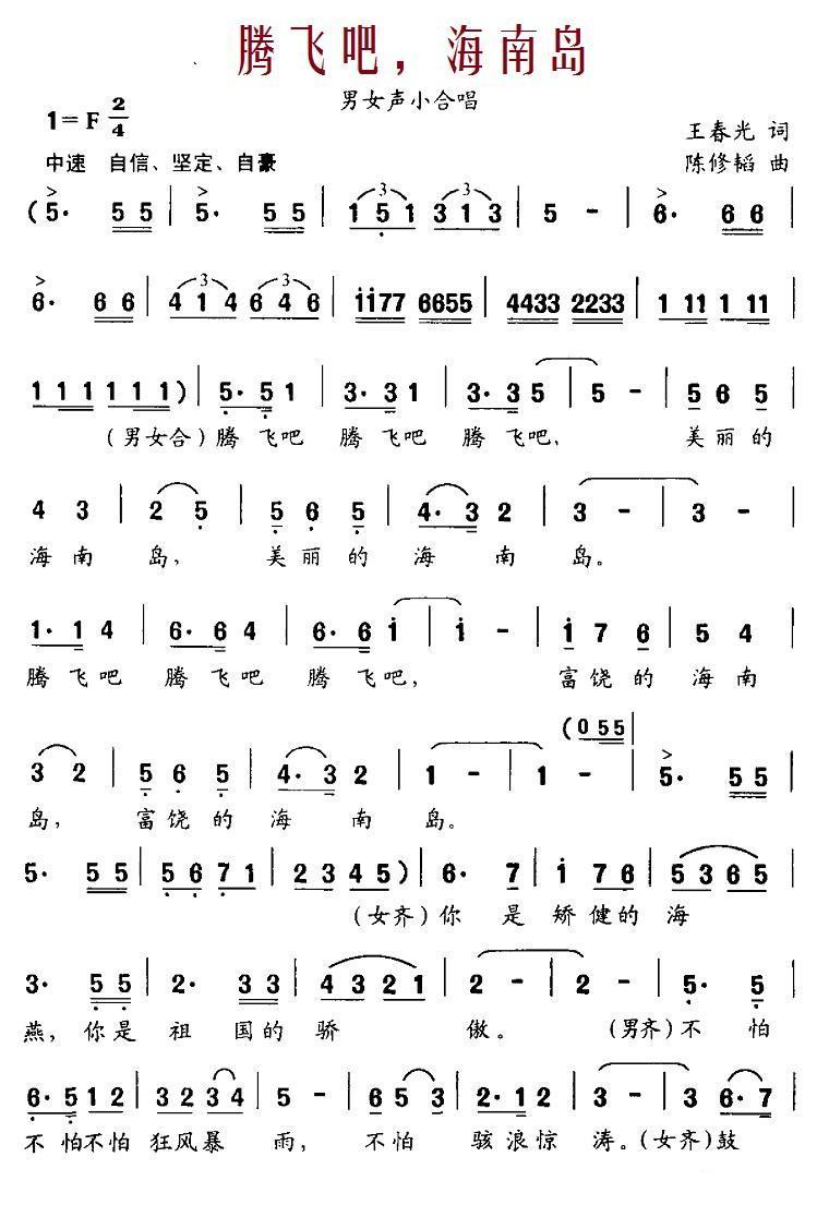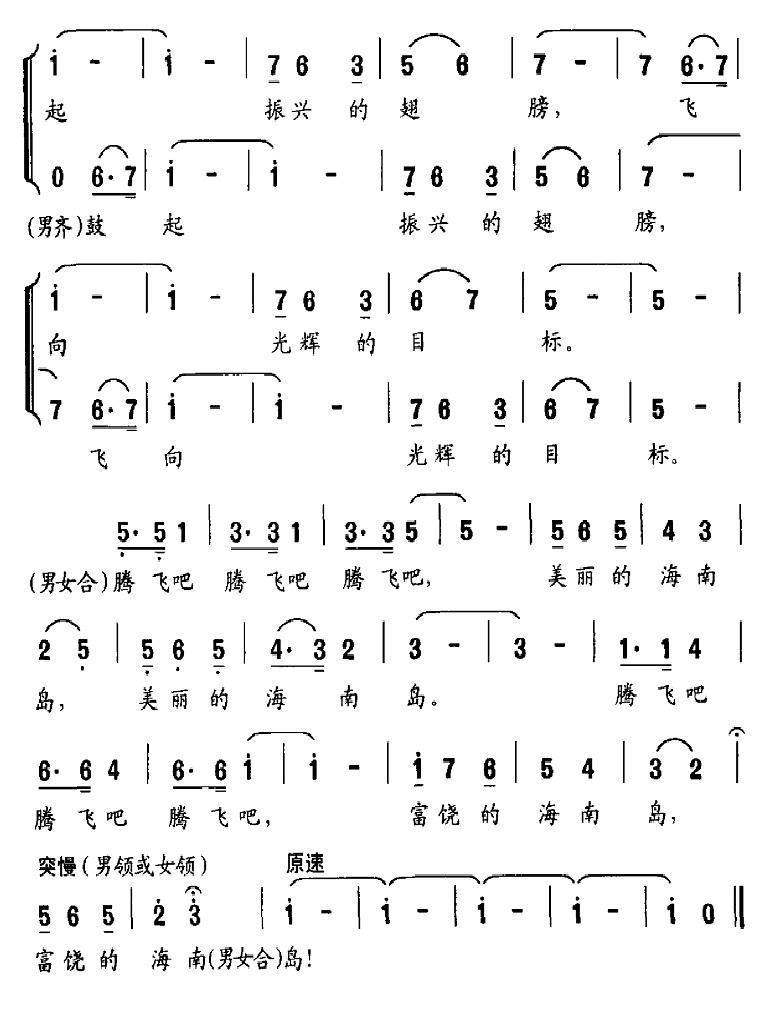 《腾飞吧,海南岛(男女声小合唱)》简谱