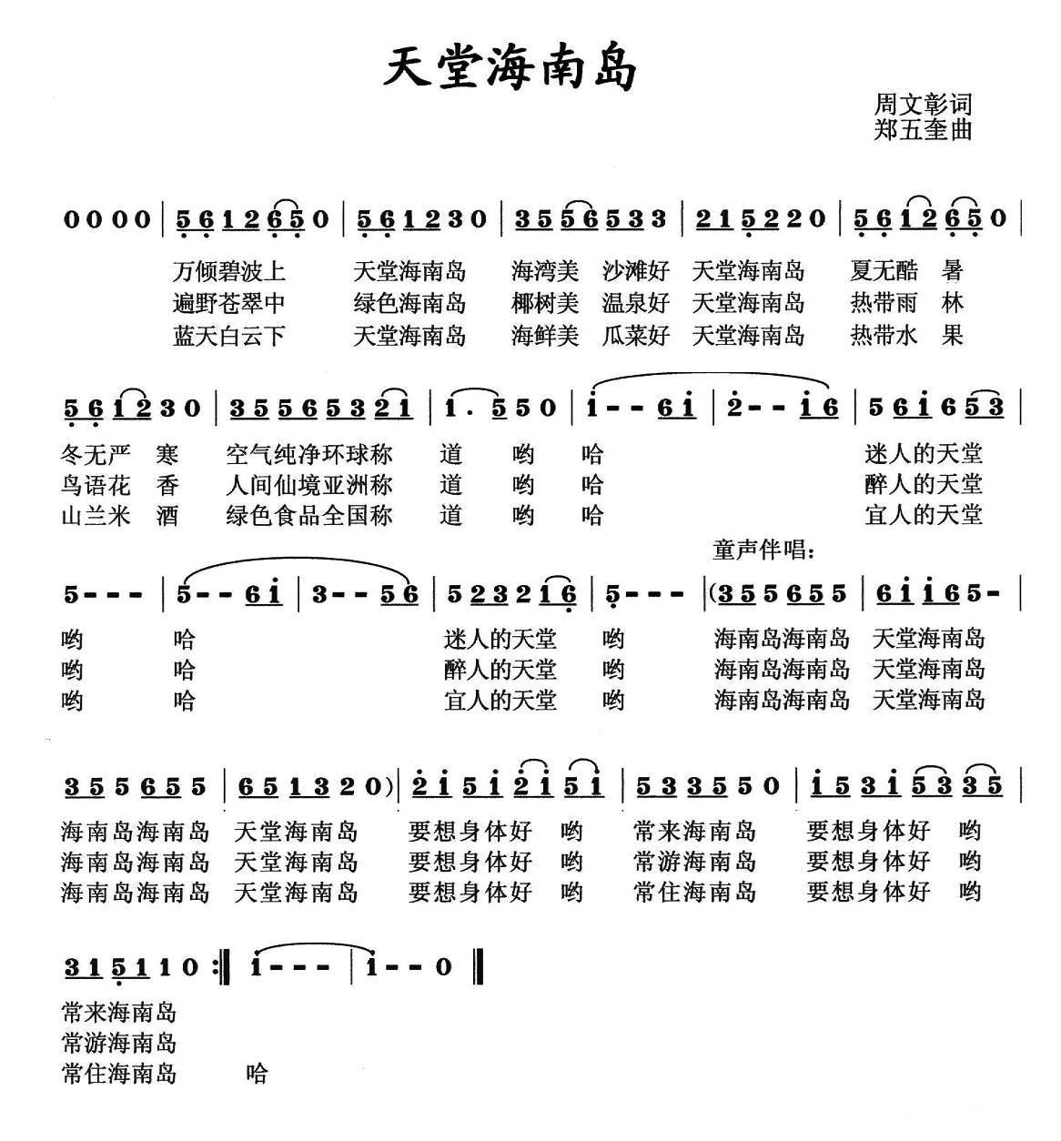 《天堂海南岛》简谱 王小曼