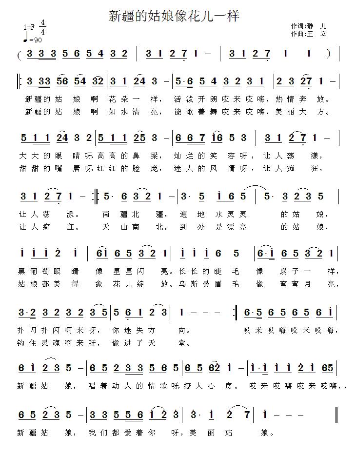 《新疆姑娘像花儿一样》简谱