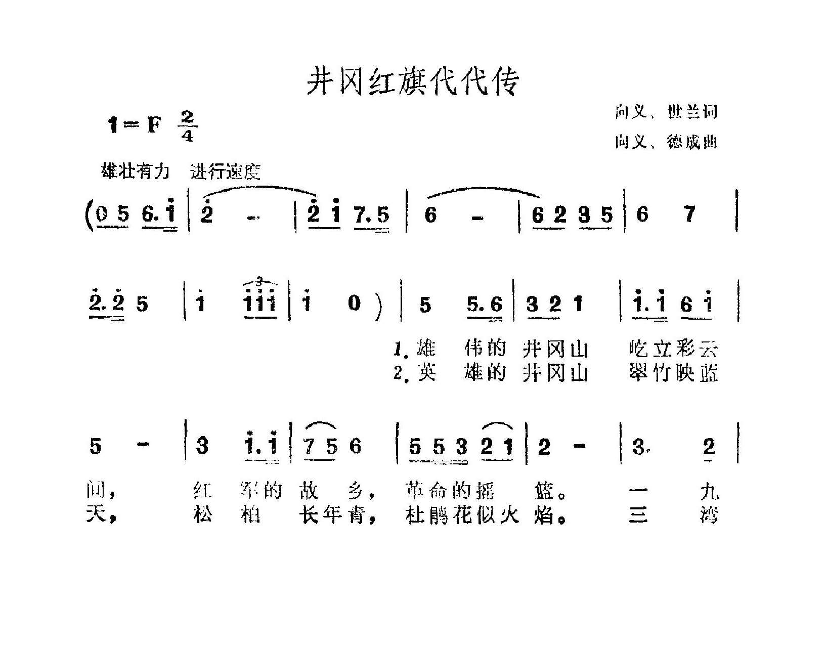 《井冈红旗代代传》简谱 江西省歌舞团