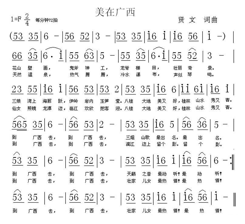 《美在广西(贤文 词曲)》简谱