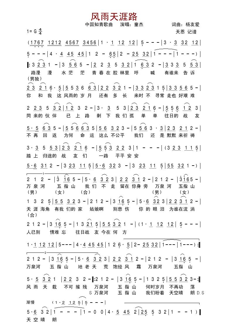 《风雨天涯路--海南知青歌曲》简谱 童杰