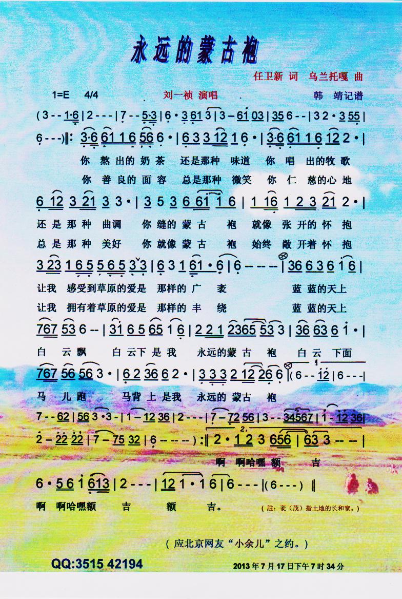 《永远的蒙古袍【彩谱】》简谱 刘一祯