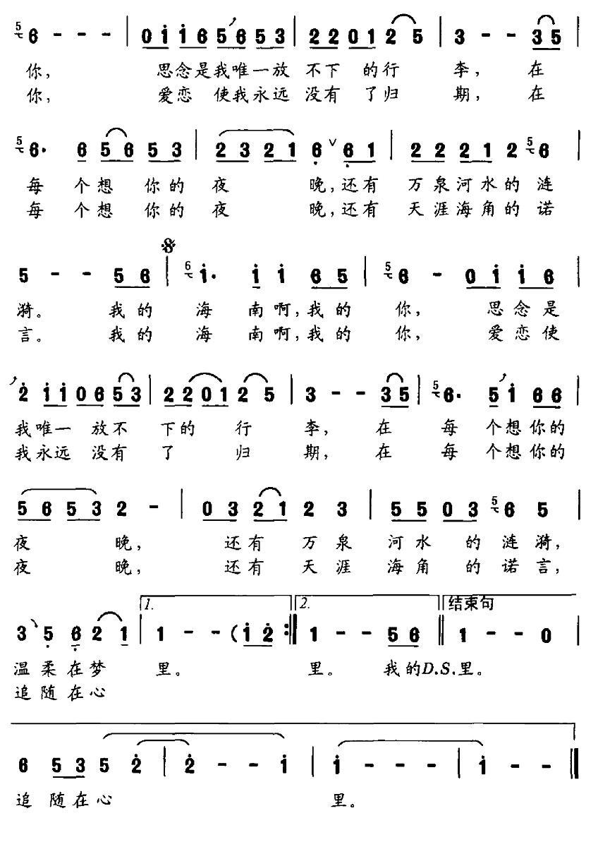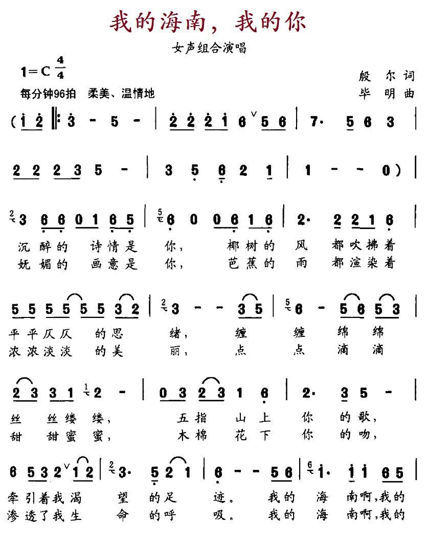 《我的海南,我的你》简谱