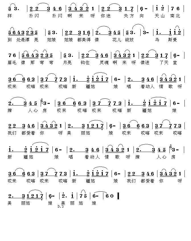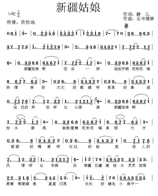 《新疆姑娘(新疆静儿词 云中缥缈曲)》简谱 李雪