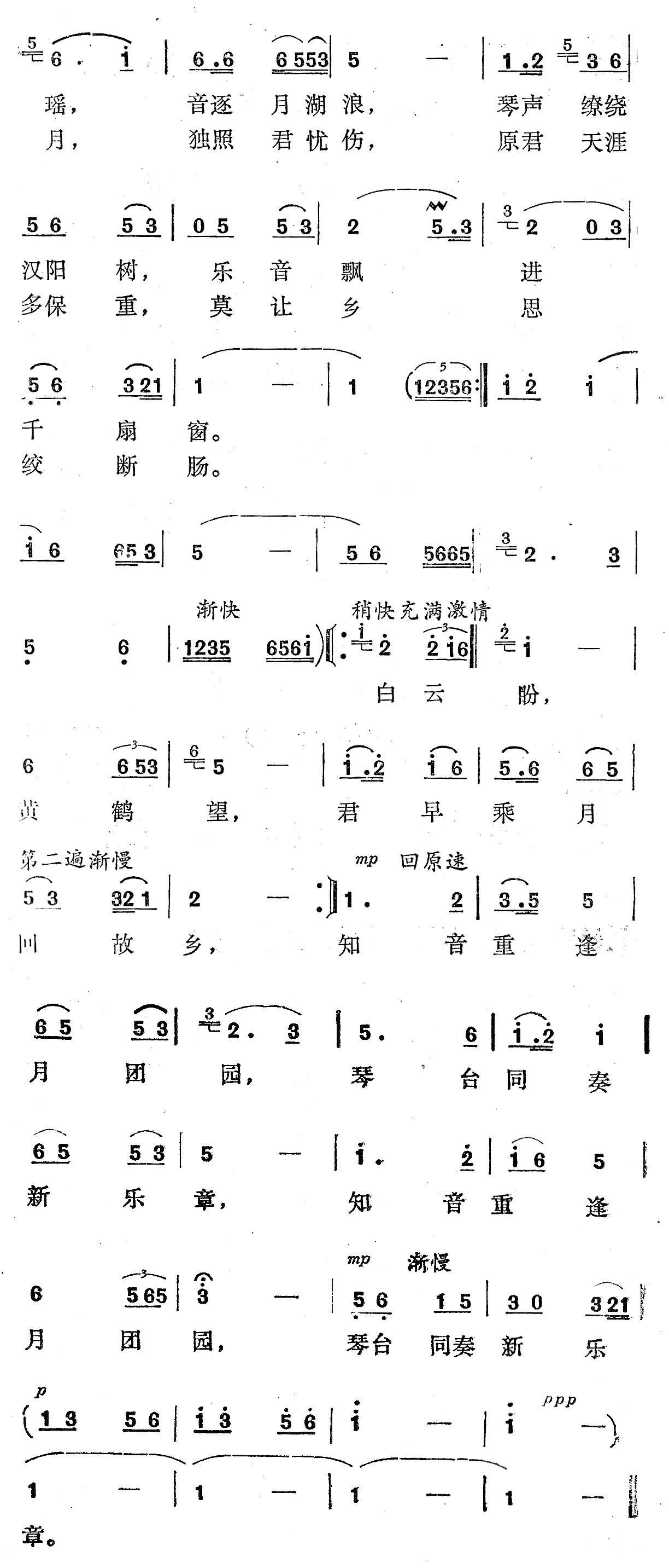 《寄语台湾的琴友(曾腾芳词 唐永荣曲)》简谱 张海曼