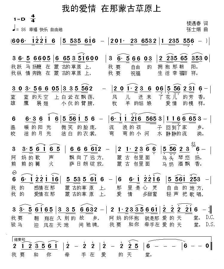 《我的爱情 在那蒙古草原上》简谱