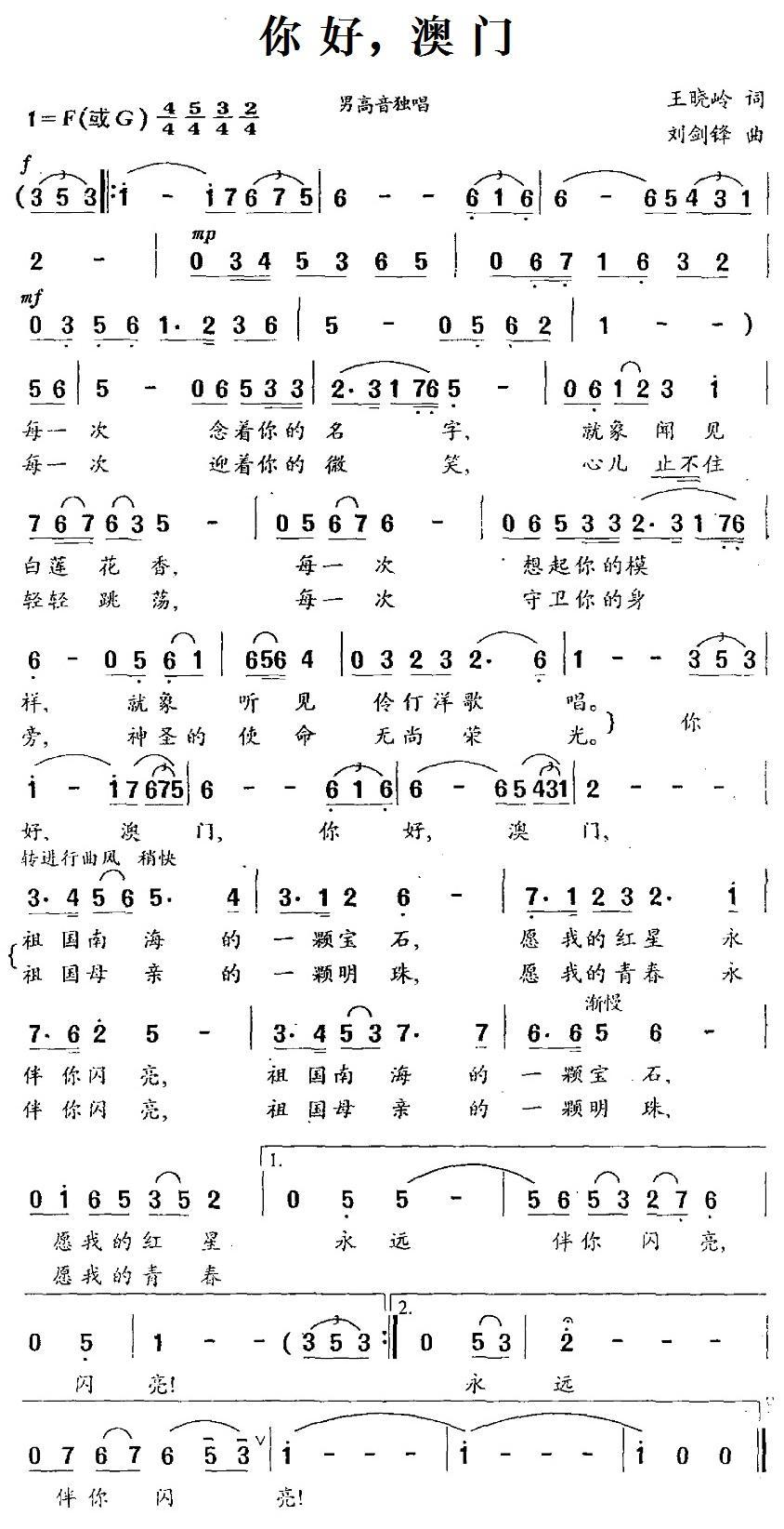 《你好,澳门》简谱