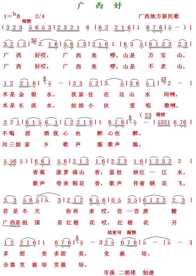 《广西好(地方新民歌)》简谱