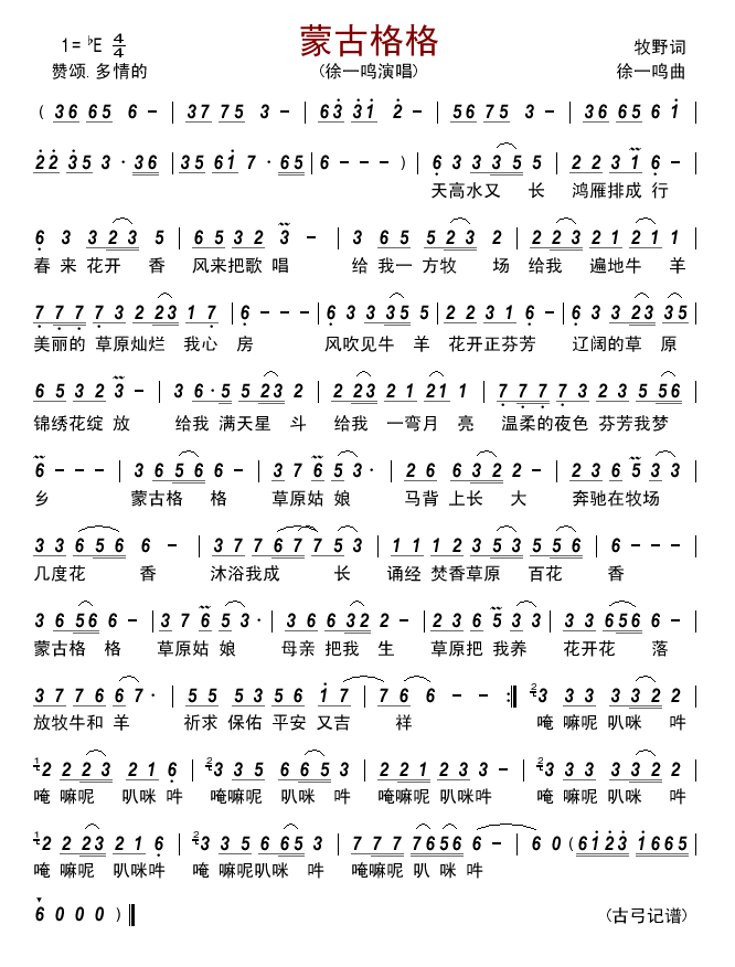 《蒙古格格》简谱 徐一鸣