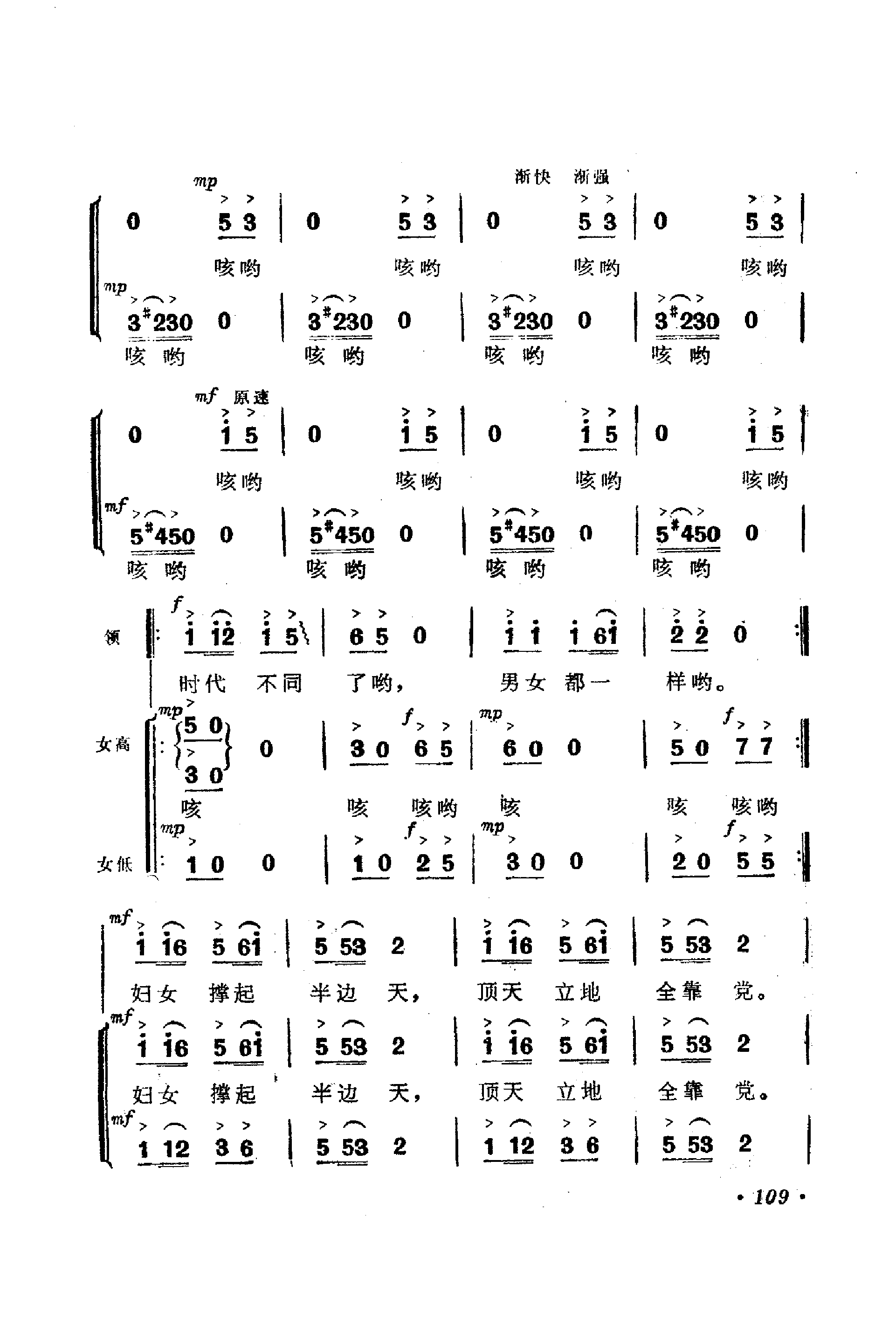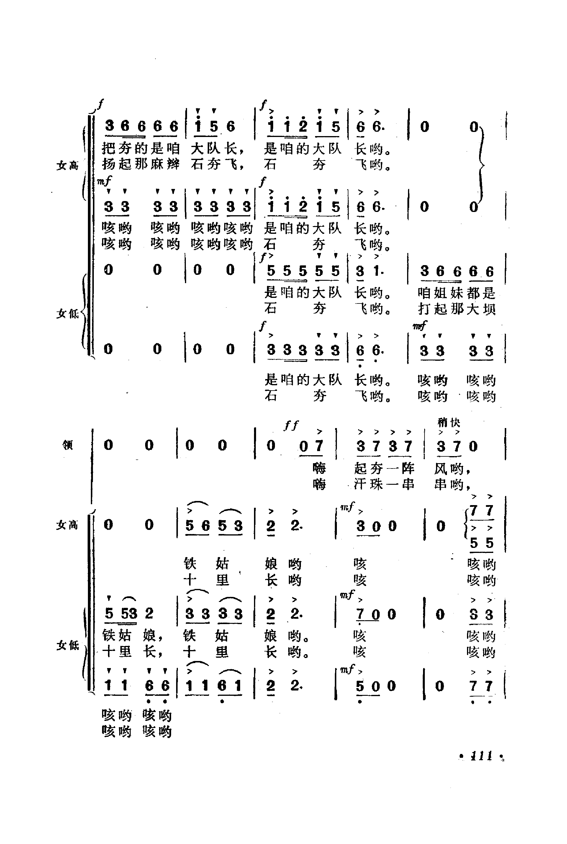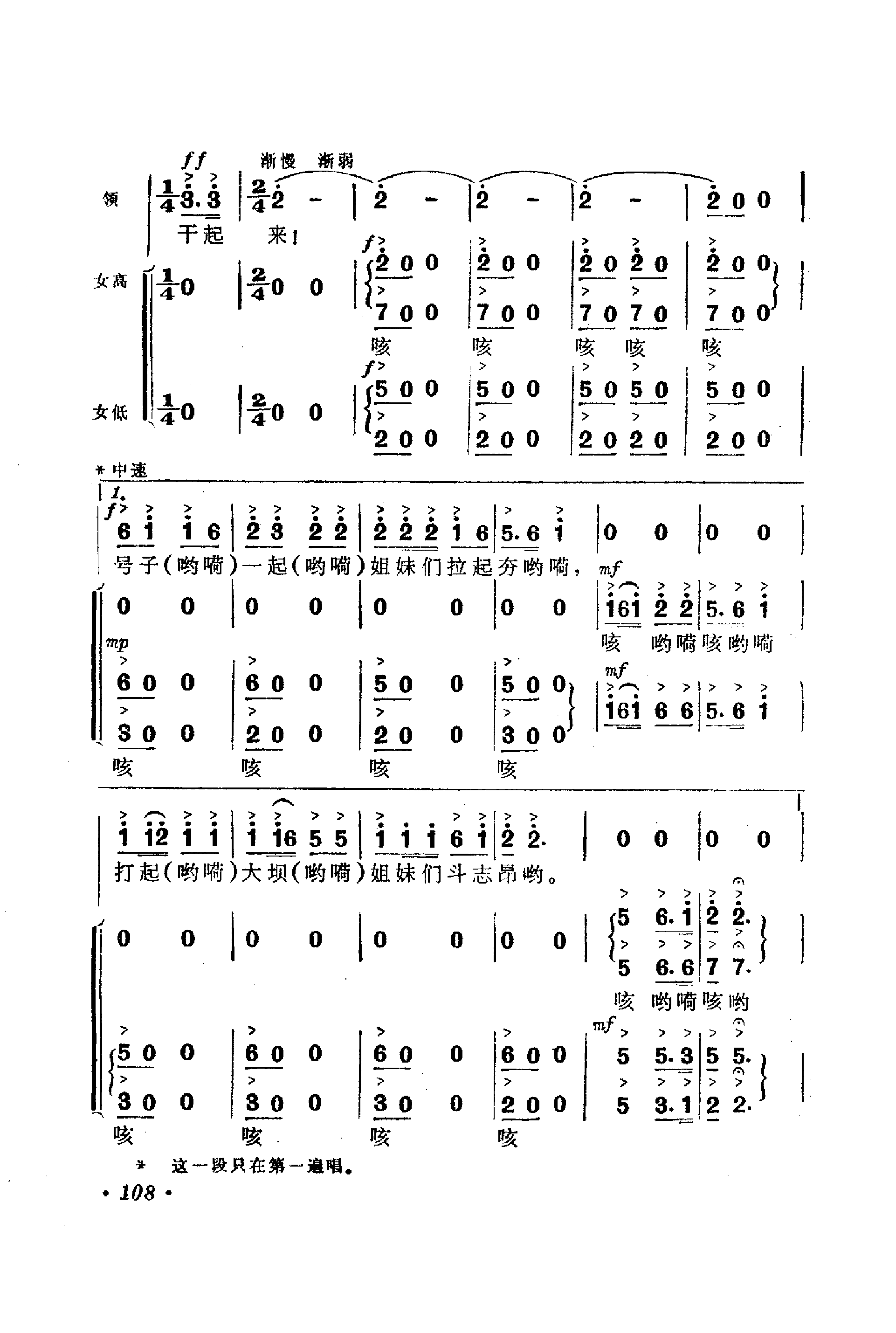 《妇女打坝歌》简谱 陕西歌舞剧院麦芝颜领唱