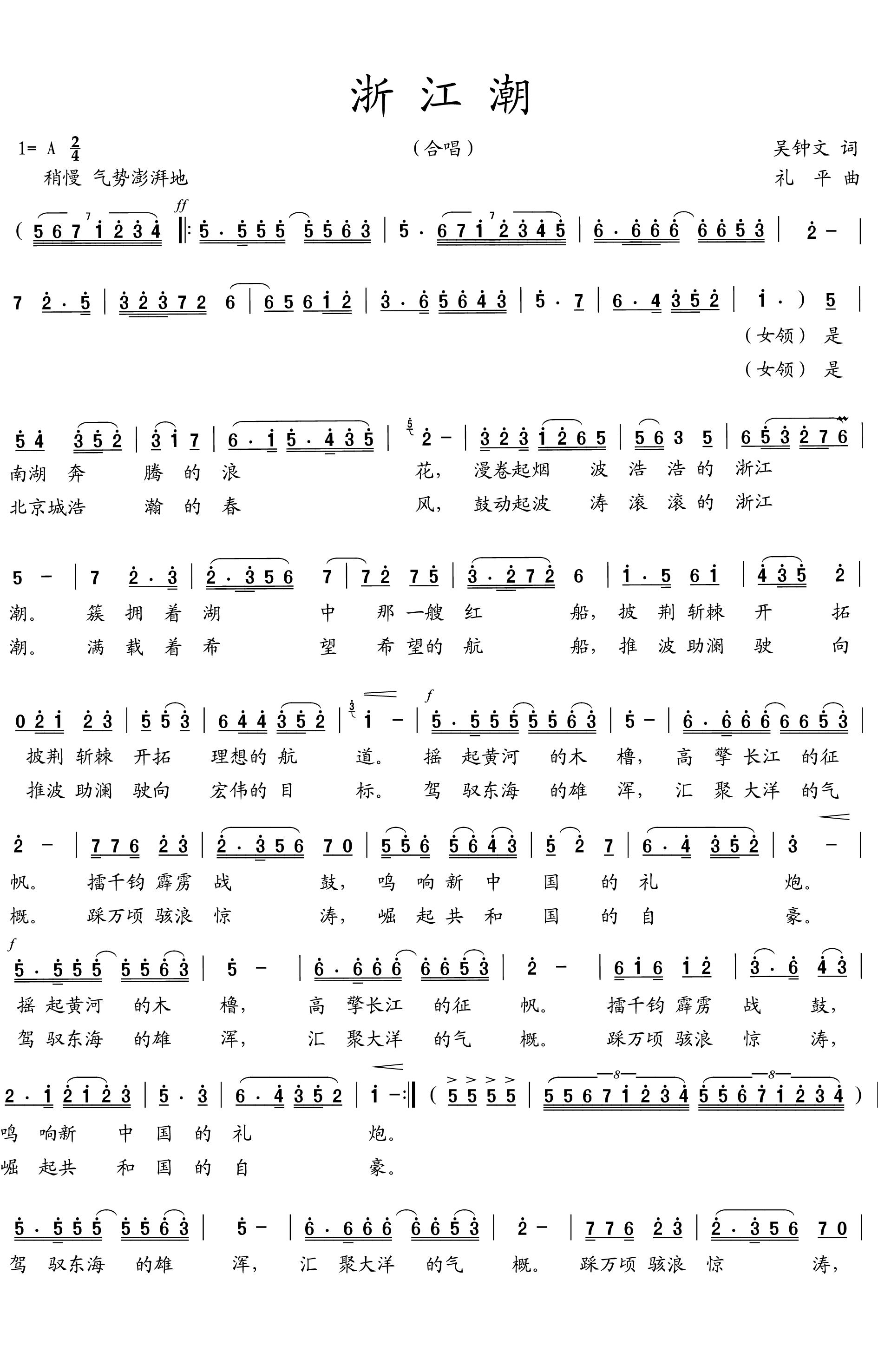 《浙江潮(吴钟文词 礼平曲)》简谱 金永玲、薛宝琳