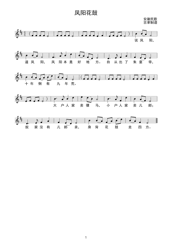 《凤阳花鼓(安徽民歌)线谱》简谱