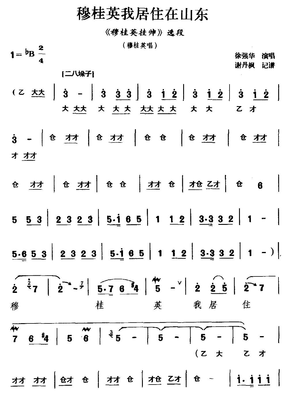 《[宛梆]穆桂英我居住在山东(《穆桂英挂帅》选段 穆桂英唱)》简谱