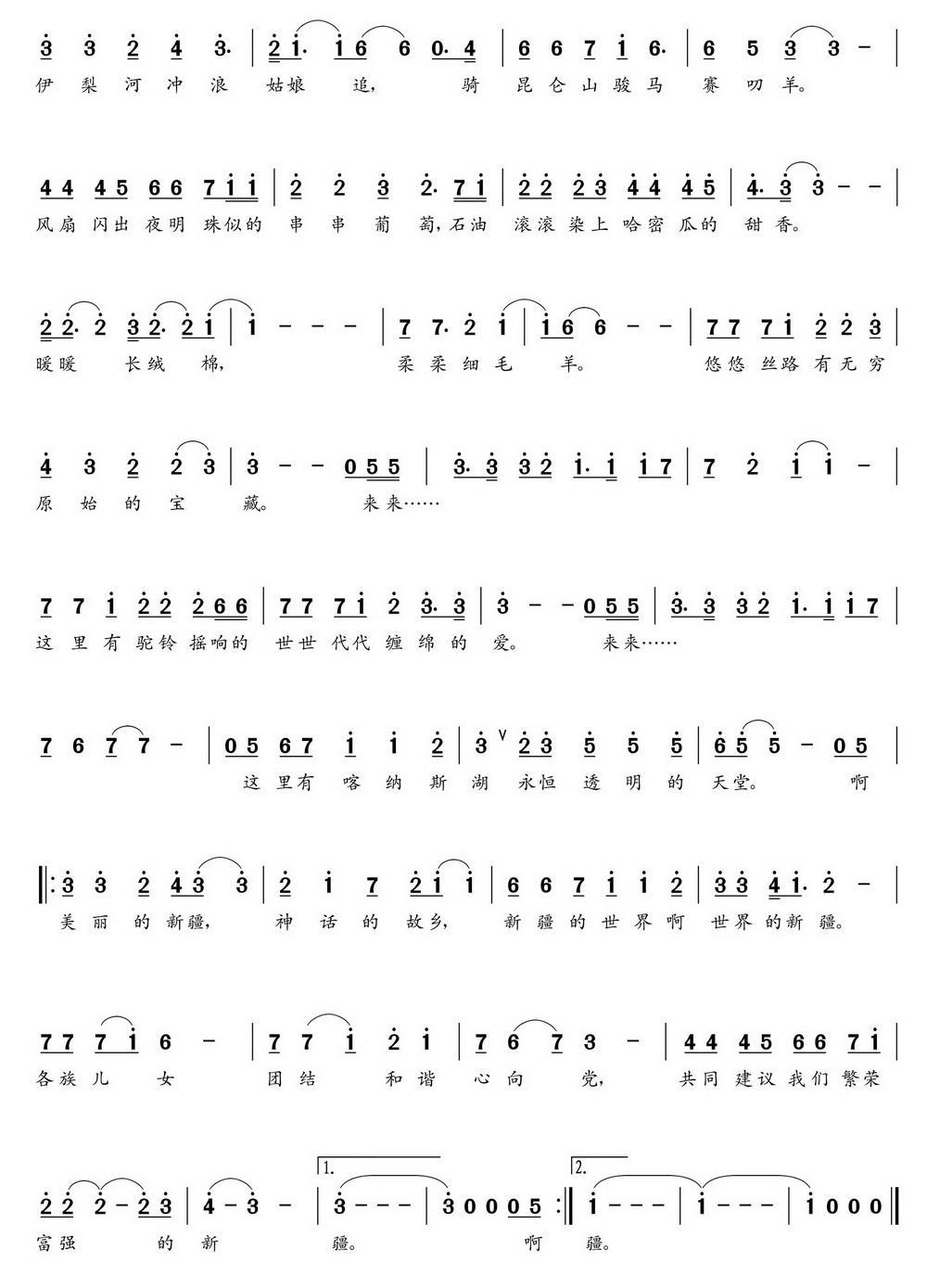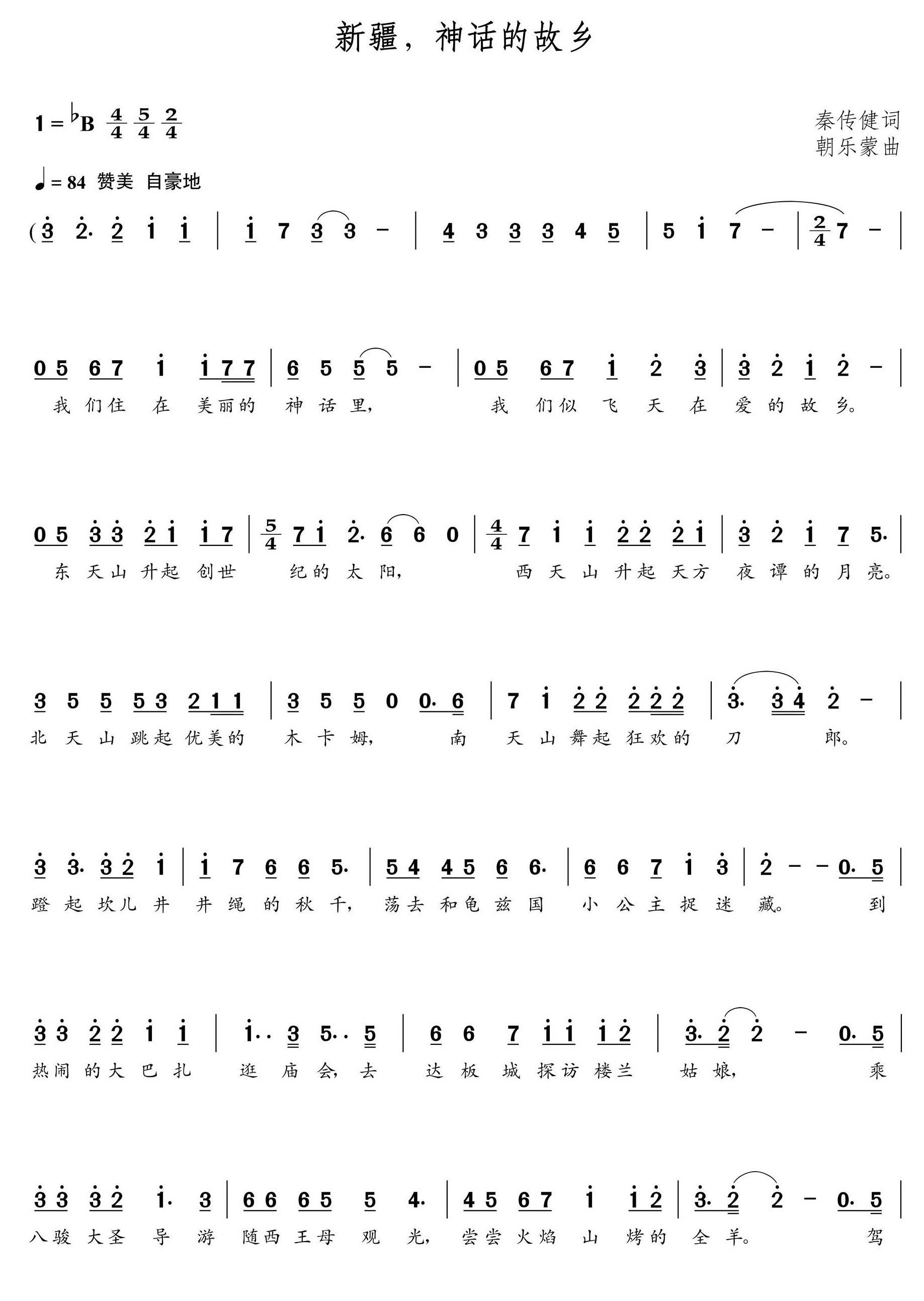 《新疆,神话的故乡(朝乐蒙曲)》简谱