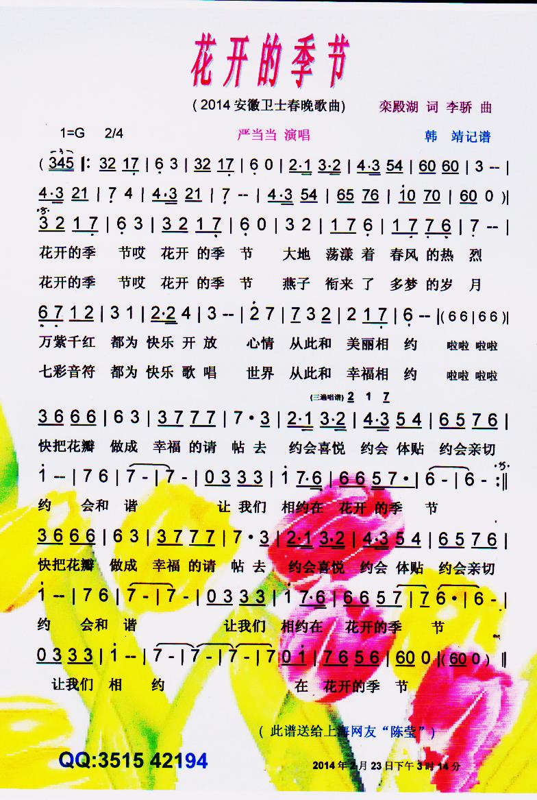 《花开的季节(2014安徽卫士春晚歌曲)【彩谱】》简谱 严当当