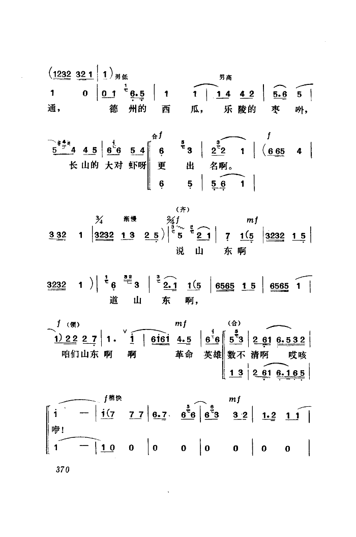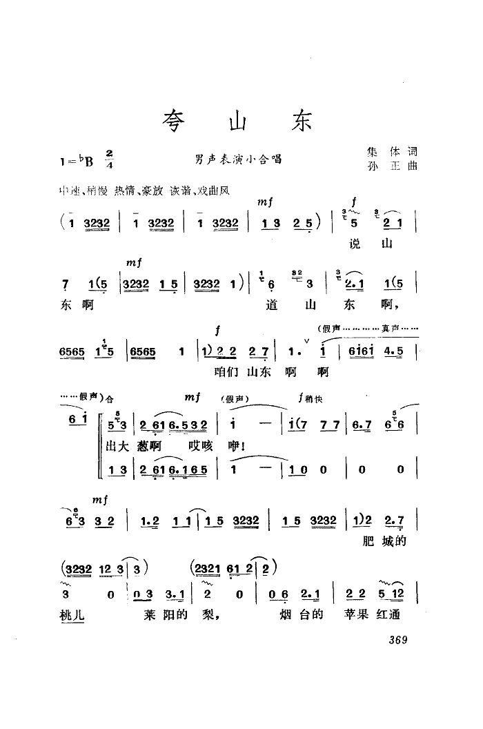 《夸山东》简谱 金麦克组合