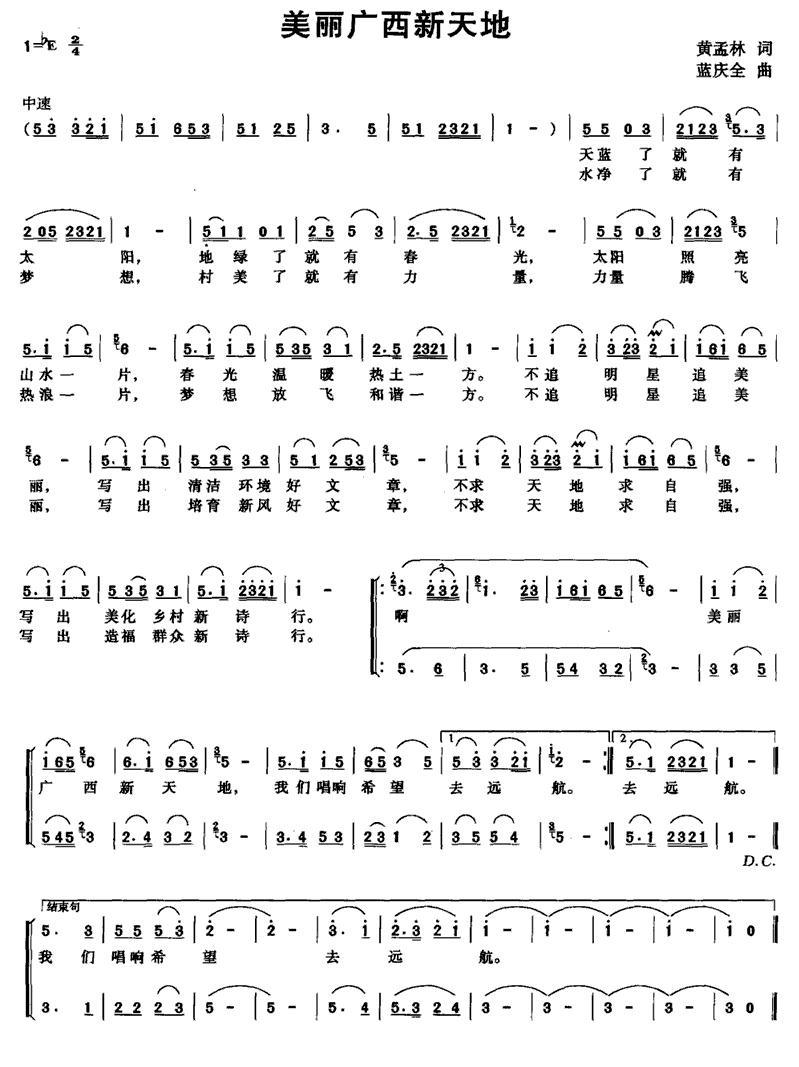 山歌(电视专题片《广西春潮》插曲)-作词:古笛 作曲:李晓琦