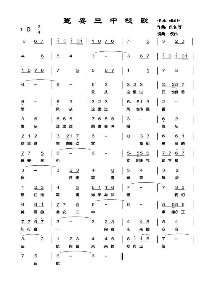 《贵州省瓮安县第三中学校歌》简谱 重庆小百花合唱团