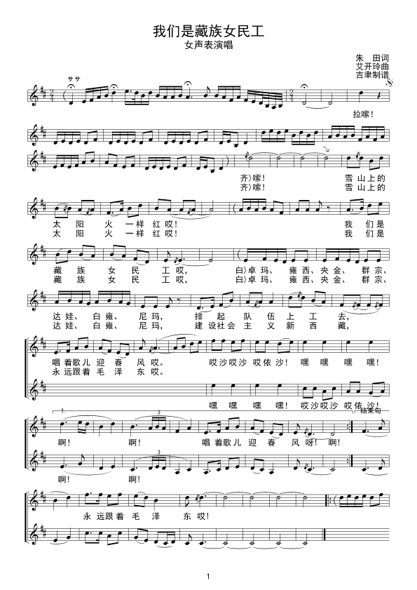 《我们是藏族女民工(线谱)》简谱
