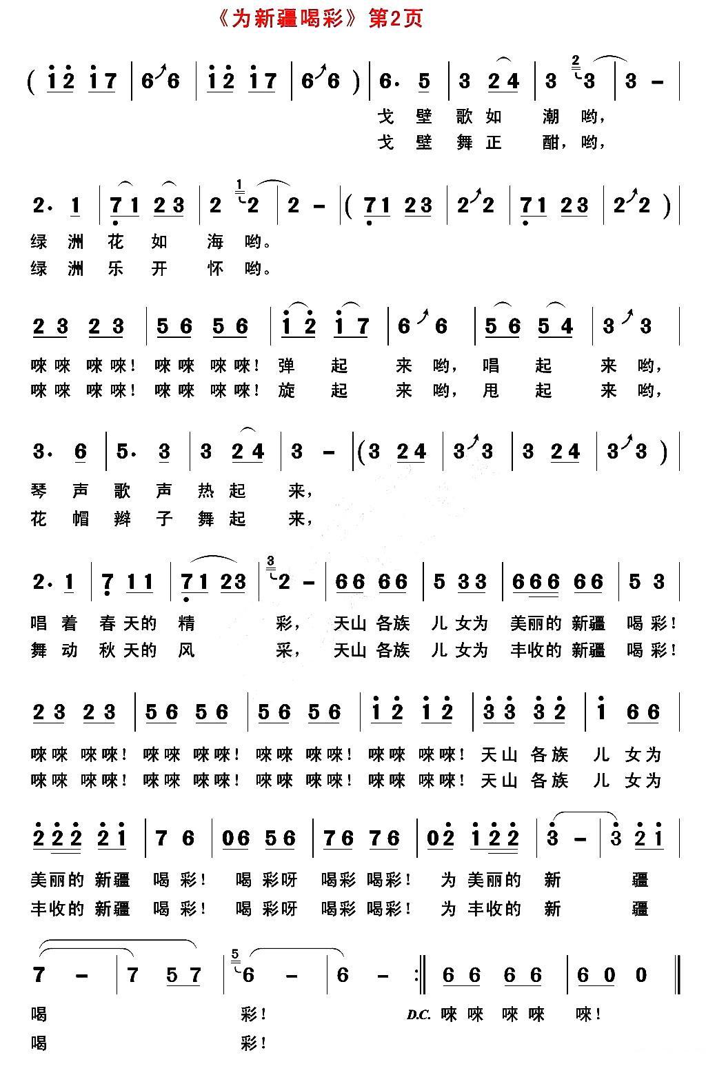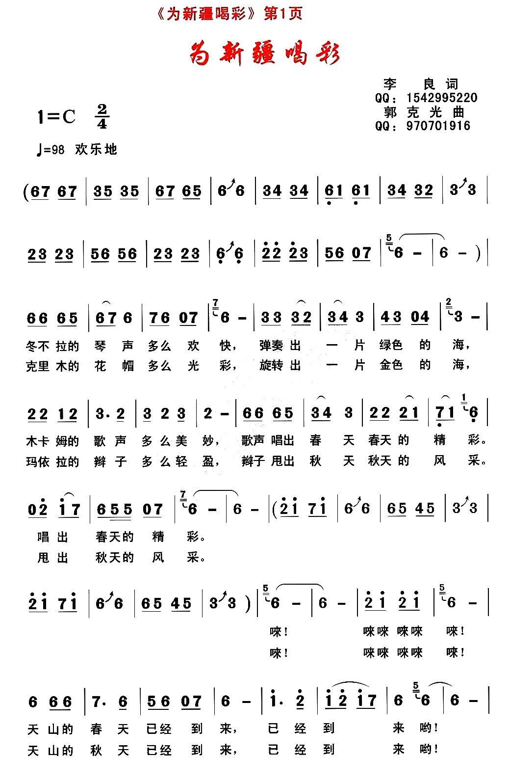 《为新疆喝彩(李良词 郭克光曲)》简谱
