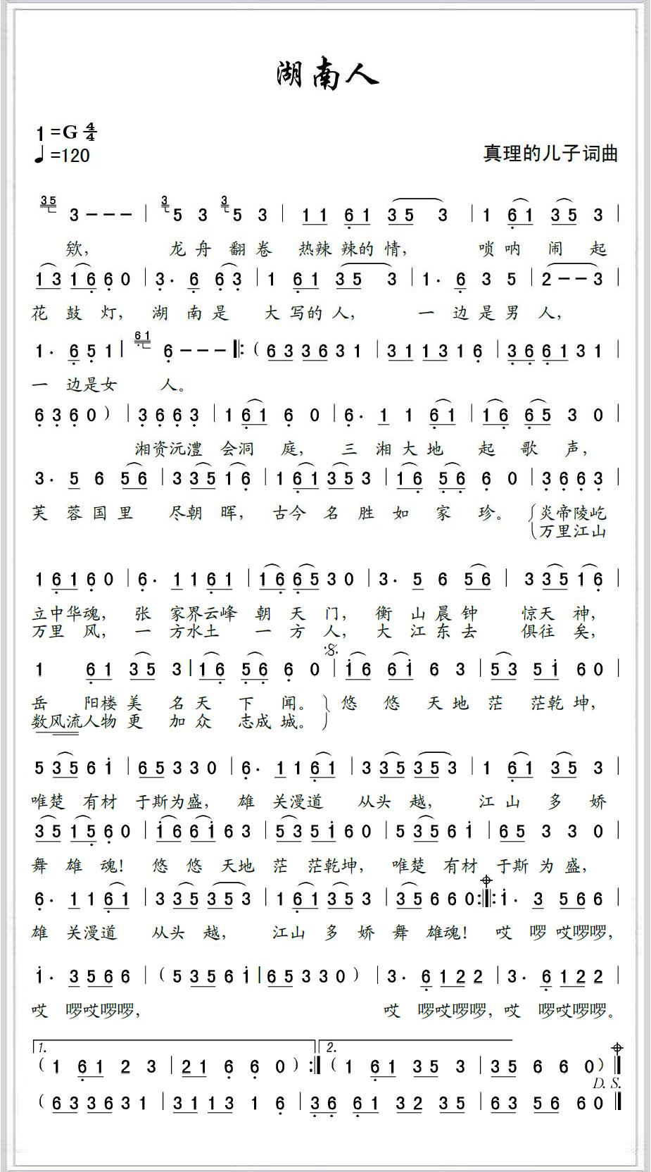 《[原创]湖南人(湖南省省歌)》简谱 刘未
