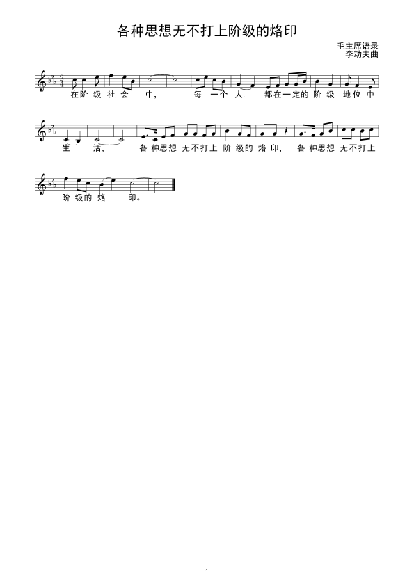 《各种思想无不打上阶级的烙印(线谱)》简谱