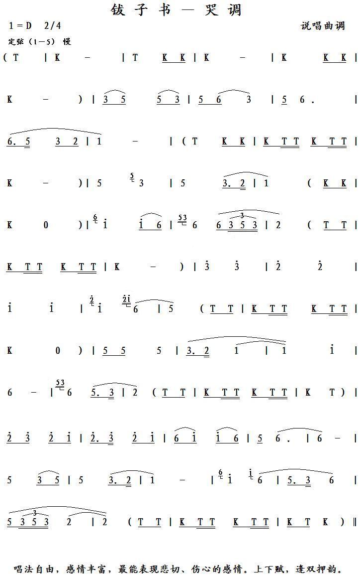 《钹子书-哭调》简谱