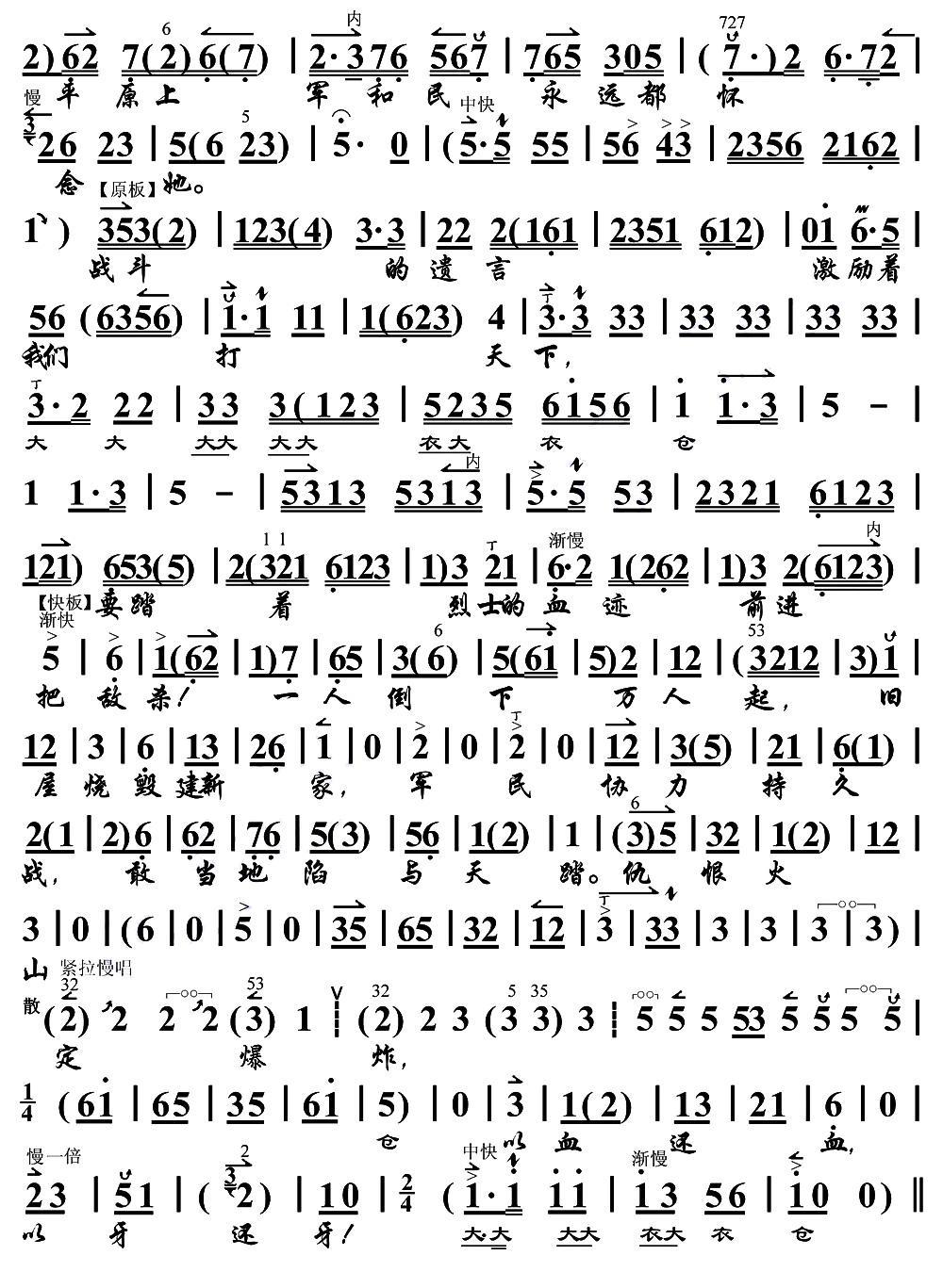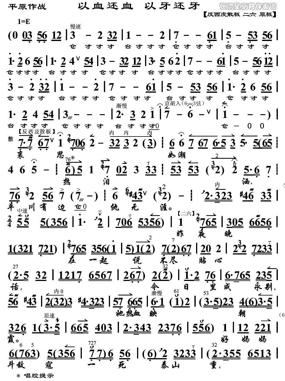 《以血还血 以牙还牙(《平原作战》选段、琴谱)》简谱