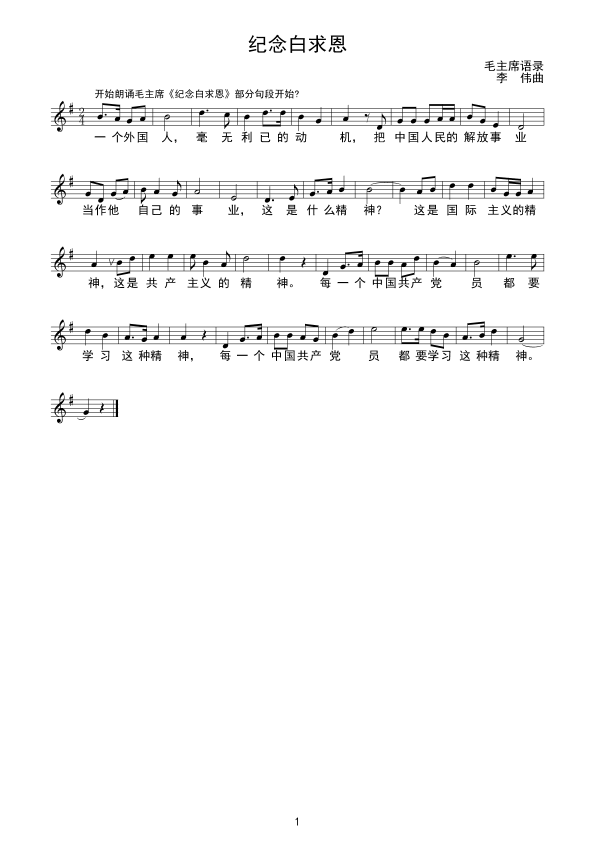 《纪念白求恩)线谱)》简谱