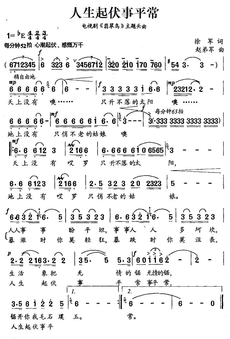 《人生起伏事平常(电视剧《翡翠鸟》主题头曲)》简谱