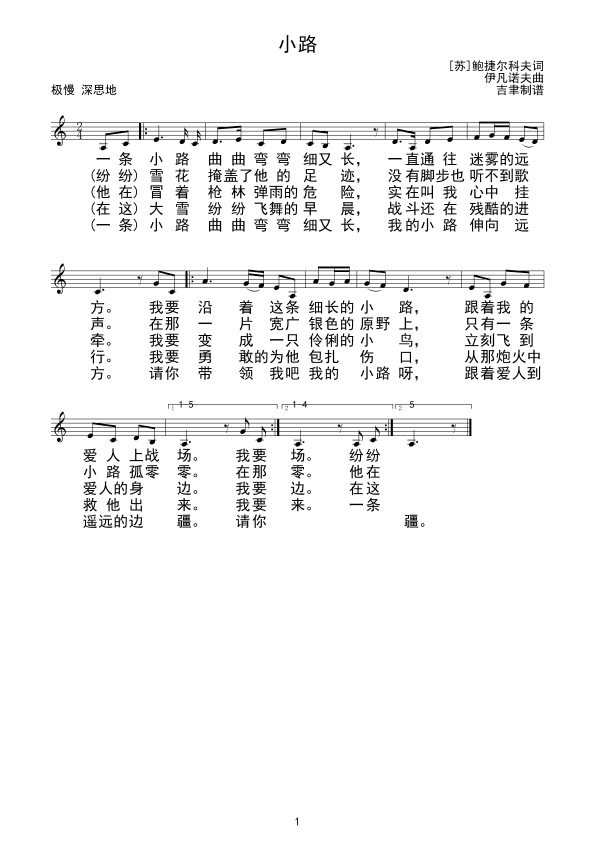 《小路(线谱)》简谱
