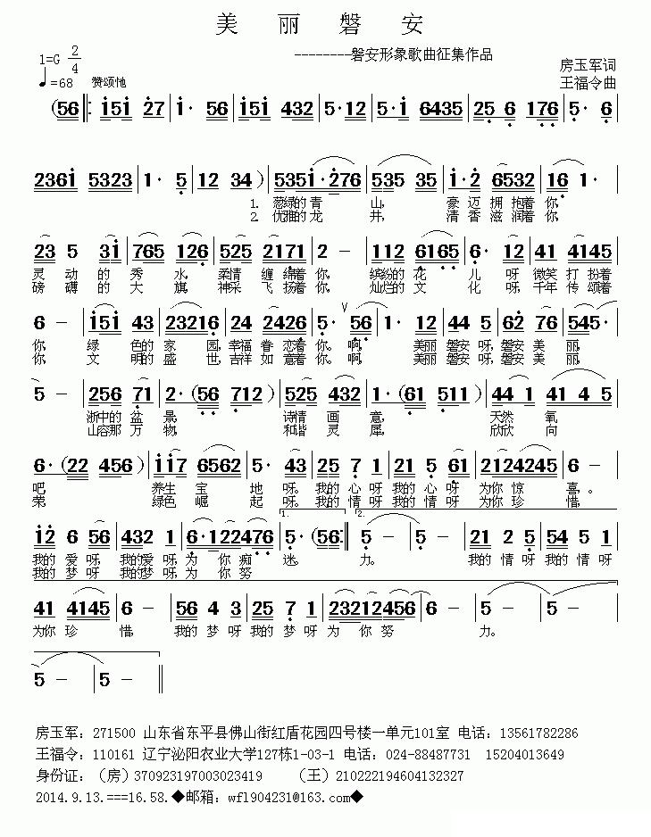 《美丽磐安》简谱