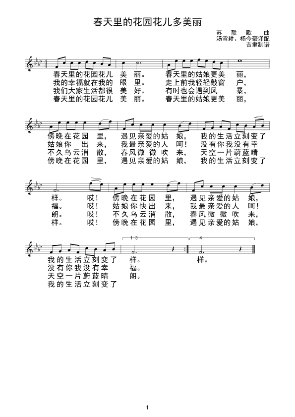 《春天里的花园花儿多美丽(线 谱)》简谱