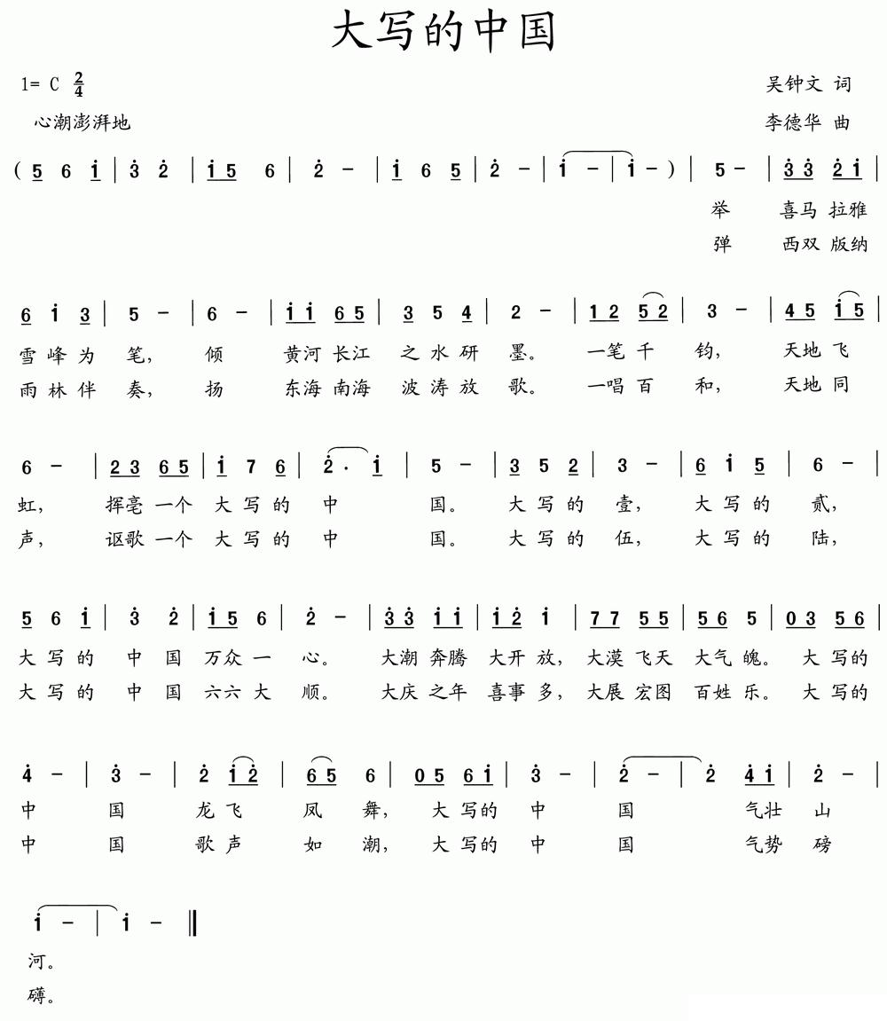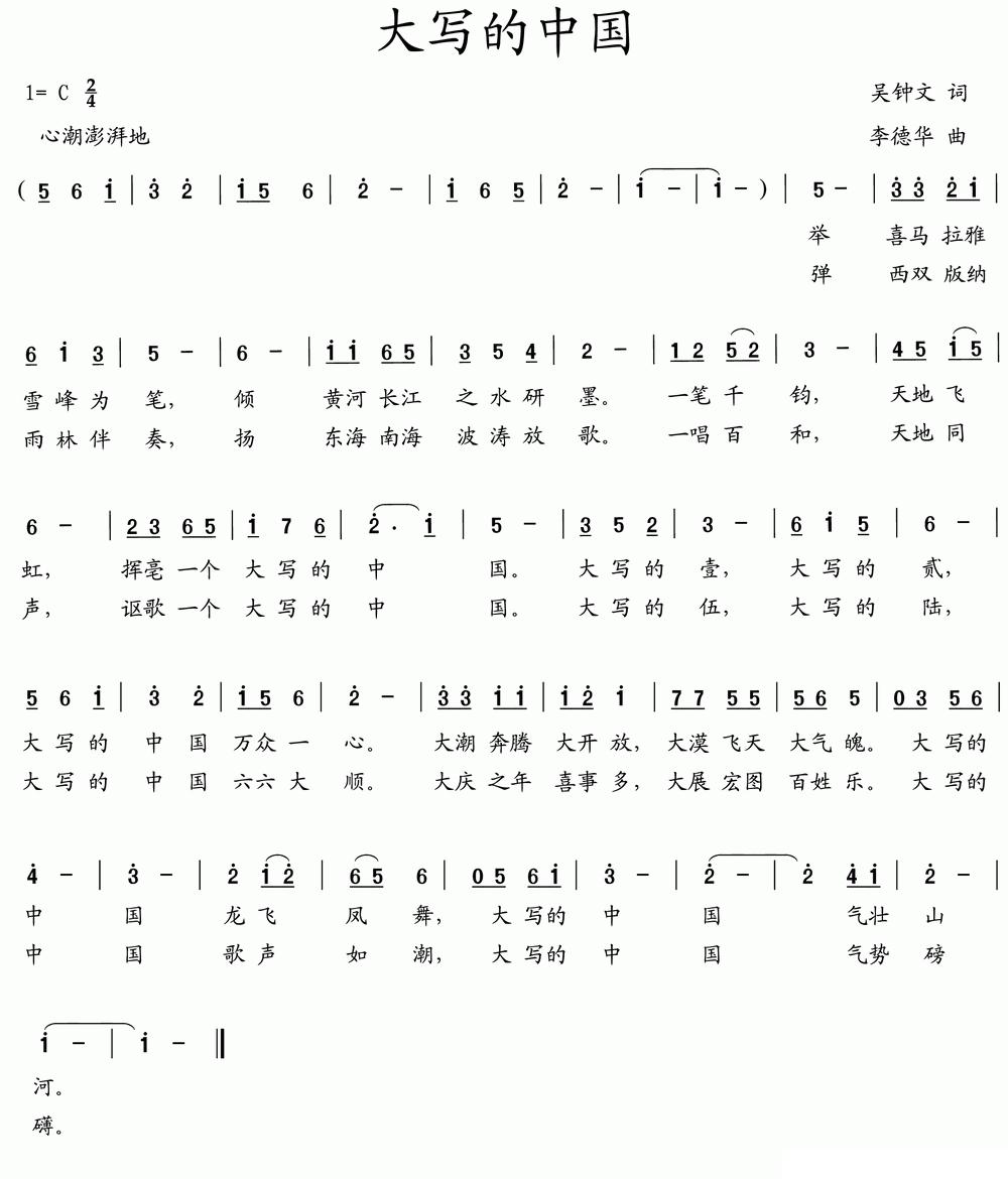 《大写的中国(吴钟文词 李德华曲)》简谱