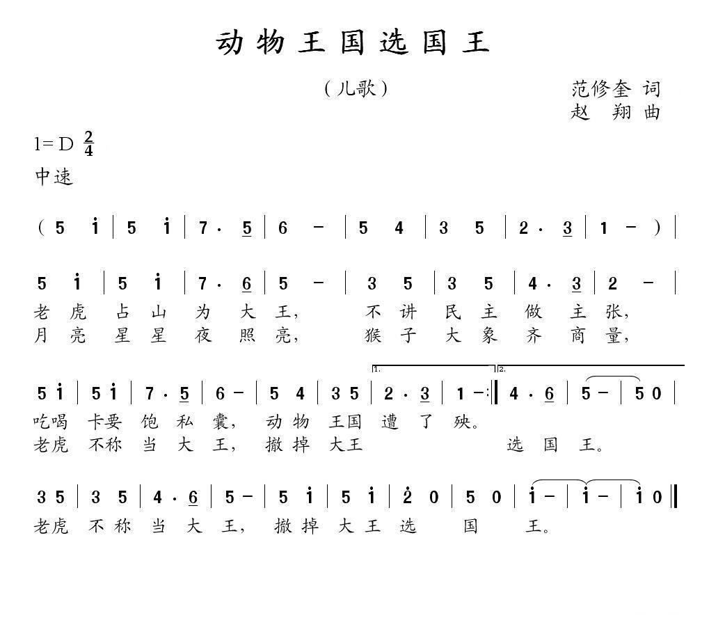 《动物王国选国王(范修奎词 赵翔曲)》简谱