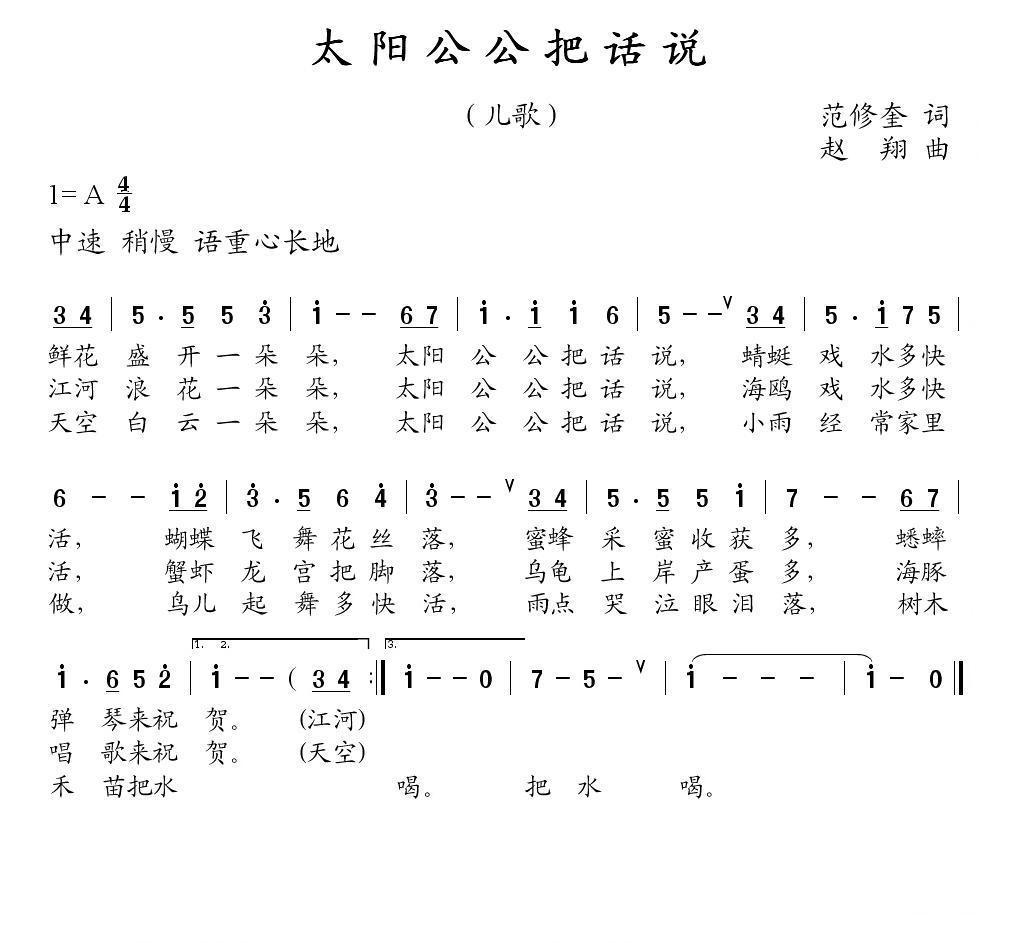 《太阳公公把话说(范修奎词 赵翔曲)》简谱