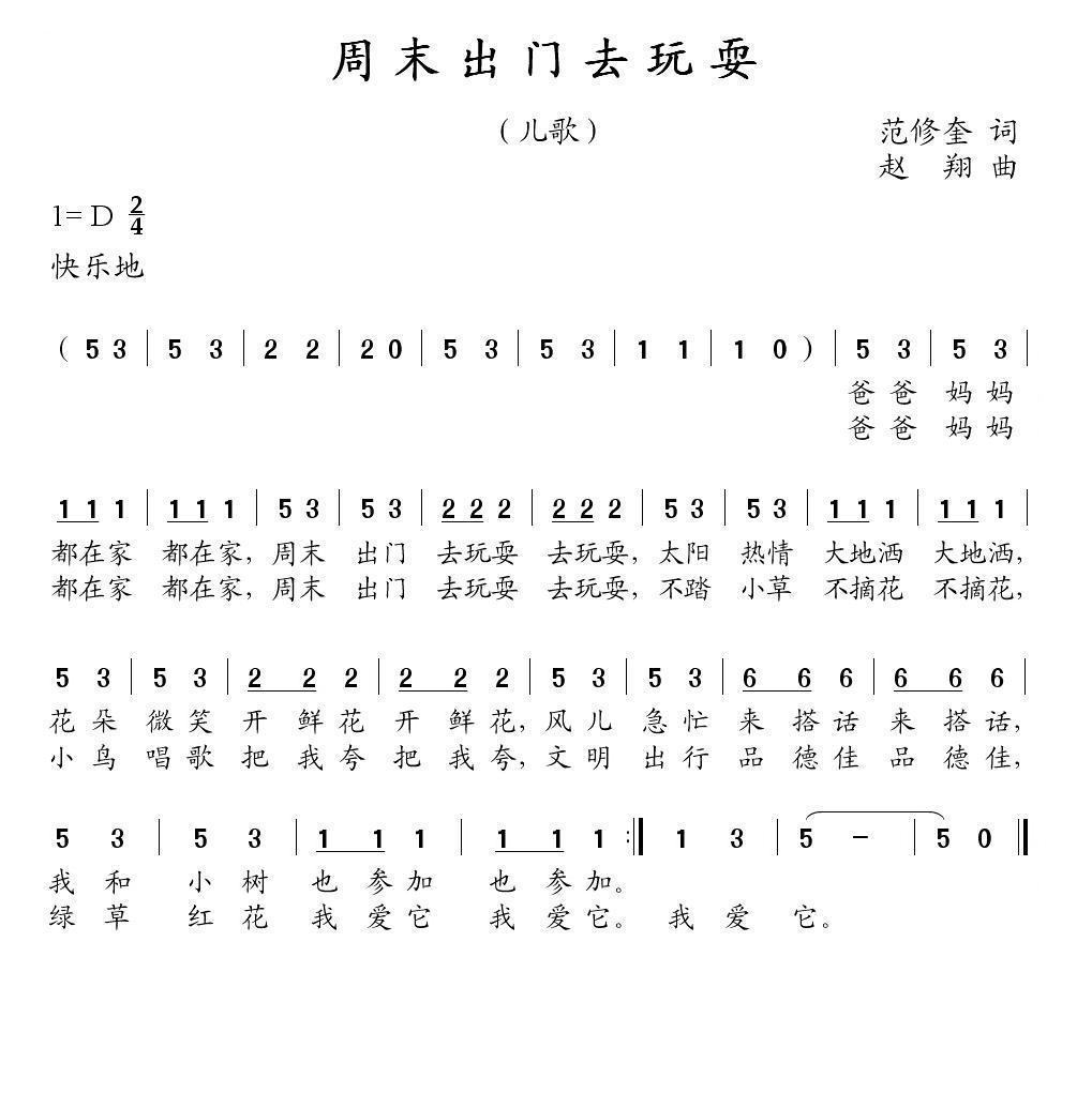 《周末出门去玩耍(范修奎词 赵翔曲)》简谱