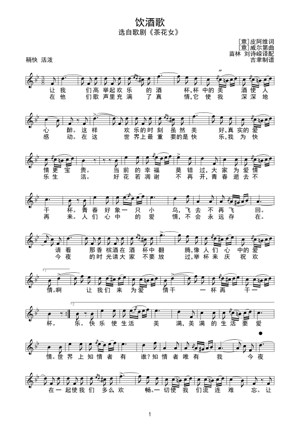 《饮酒歌(线谱)》简谱